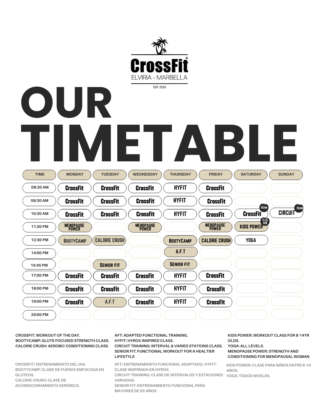 Our Schedule *The studio classes: Bootycamp, A.F.T, Senior Fit, Menopause Power, and CalorieCrush are only included when you have a bono card